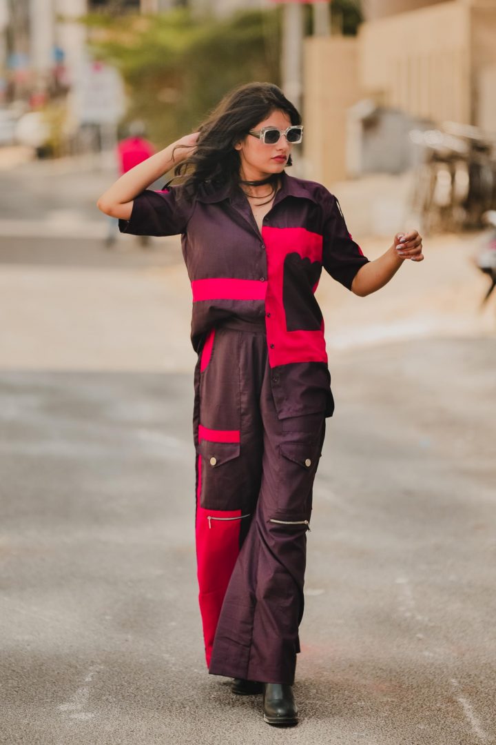 irport Looks: TWIN SHADE Women’s Purple Pink Colorblock Co-Ord Set