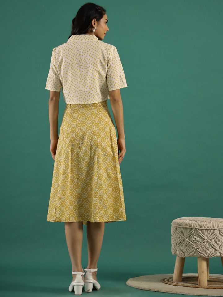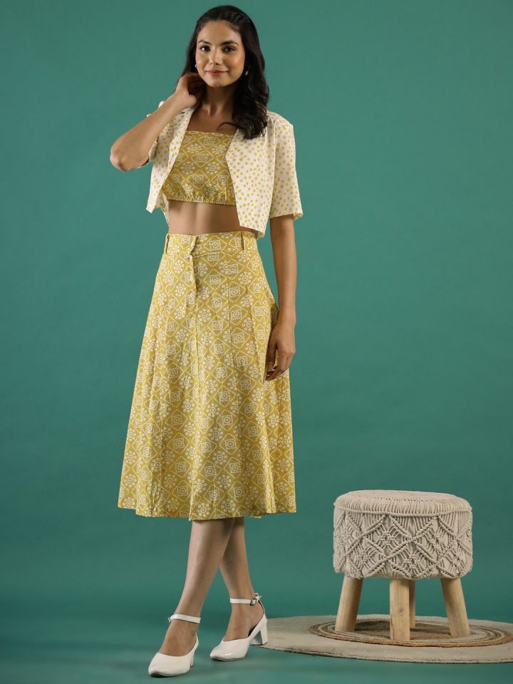 Layered Sets: Printed Pure Cotton Top & Skirt with Jacket Co-Ord Set