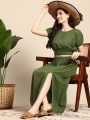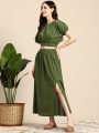 Comfortable pure cotton crop top paired with a matching skirt. Ideal for casual outings and effortless style.