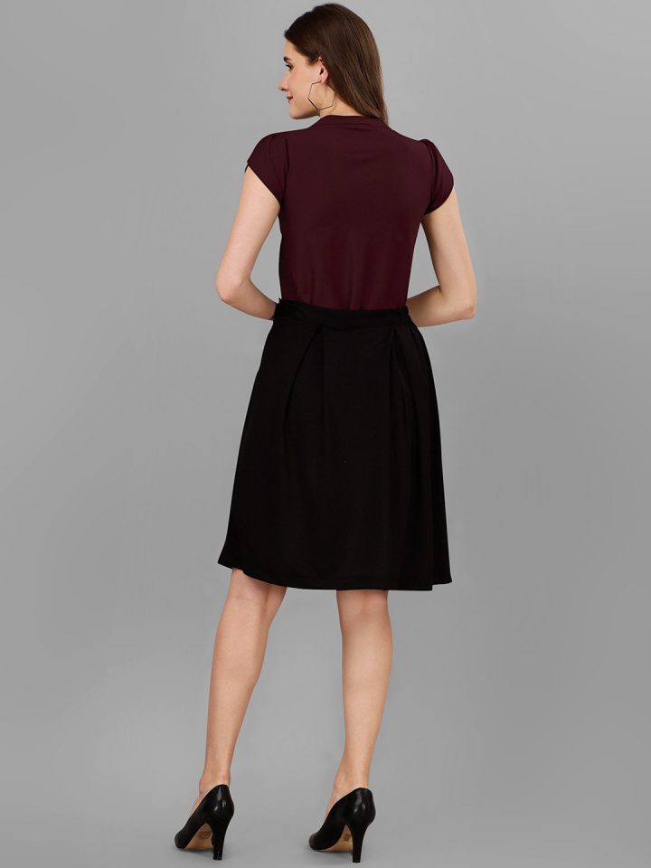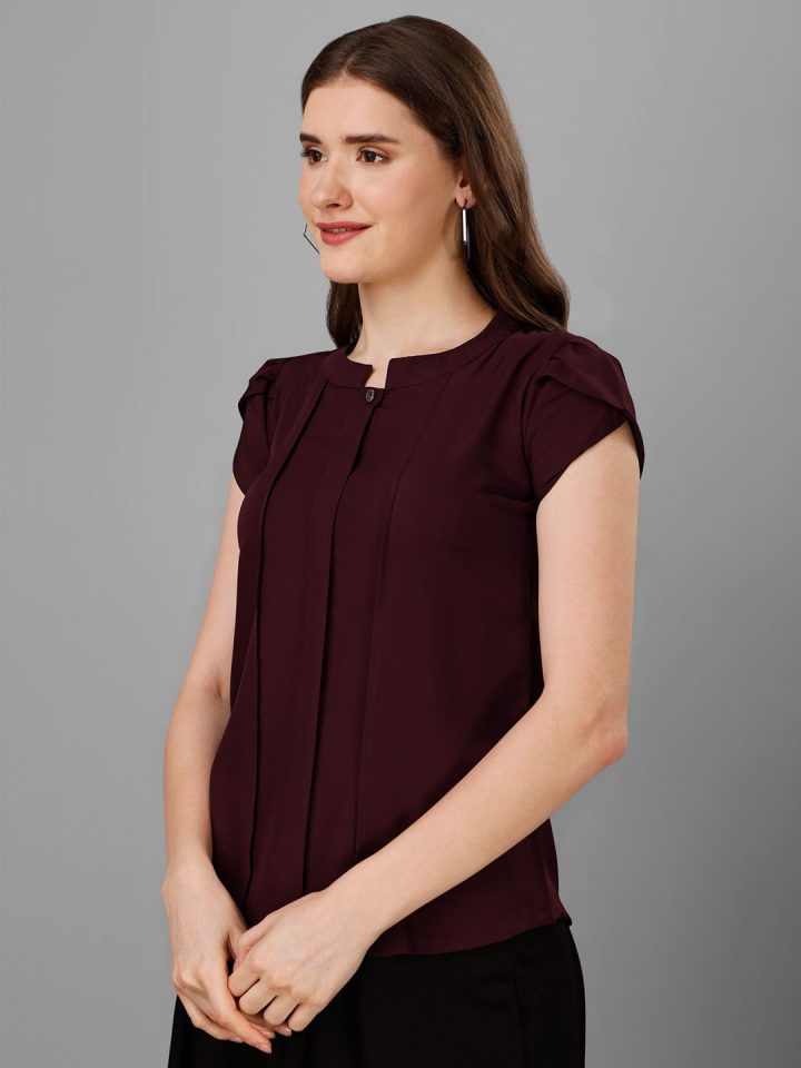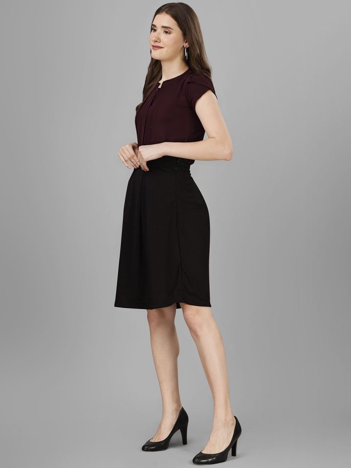 Stylish short sleeve top with a mandarin collar paired with a matching skirt. Ideal for casual and semi-formal wear.