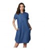 A classic blue denim dress with a collar neck and short sleeves. Stylish, versatile, and ideal for casual outings.