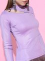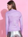 Steal the scene wherever you go in this stunning top. This top is designed with an elegant solid pattern and a lovely high neck for enhanced appeal.