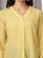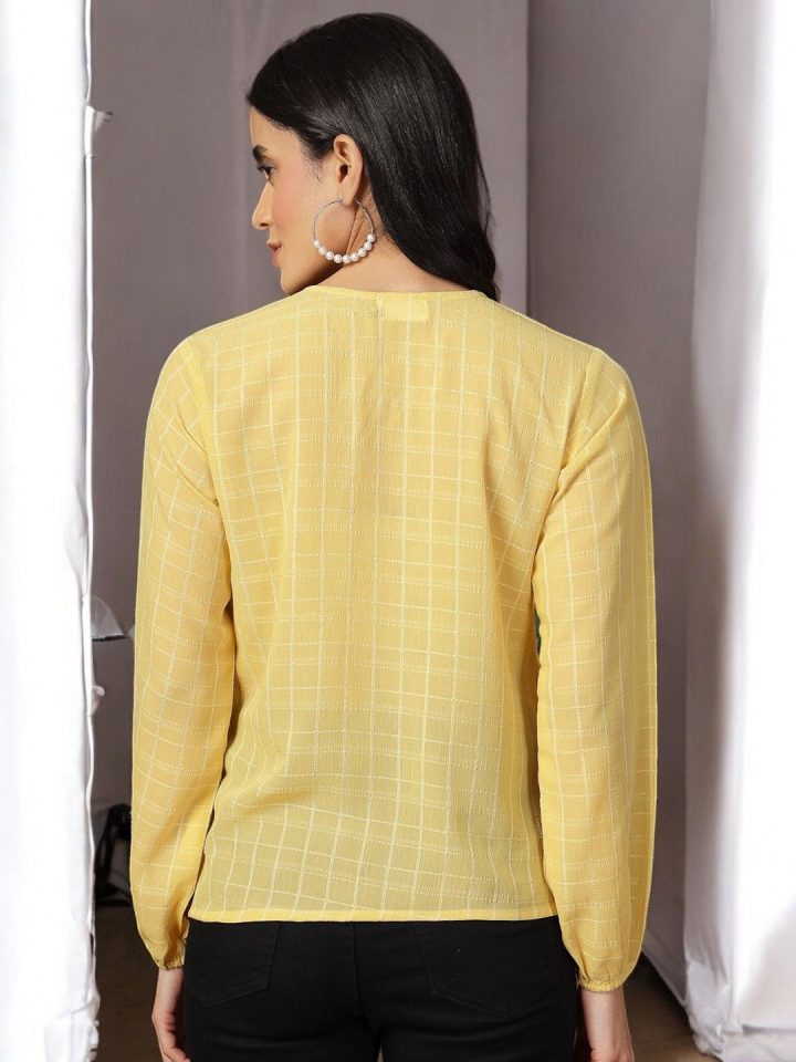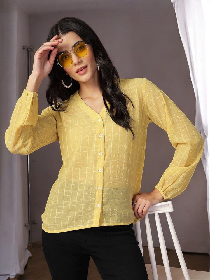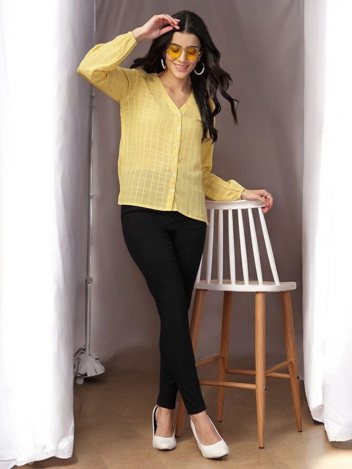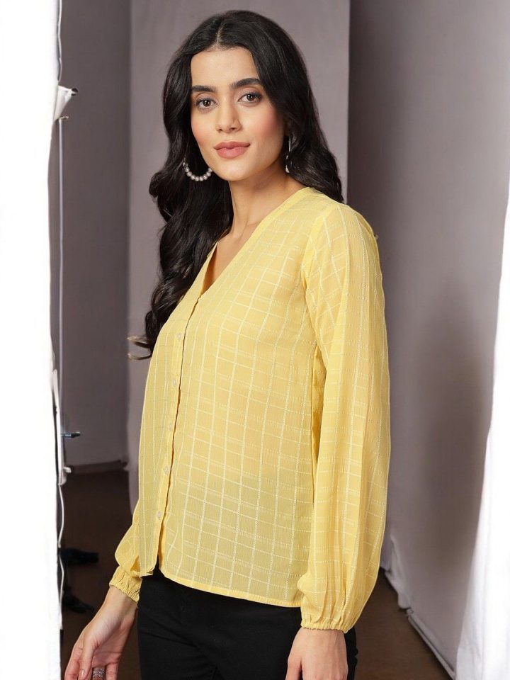 Yellow solid striped opaque Formal shirt ,has a mandarin collar, button and loop, na pocket, long regular sleeves, straight hem