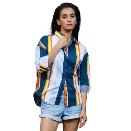 Wrinkle-Free Sets: Mast & Harbour Women’s Multi-Striped Casual Shirt
